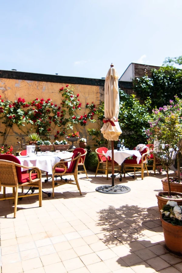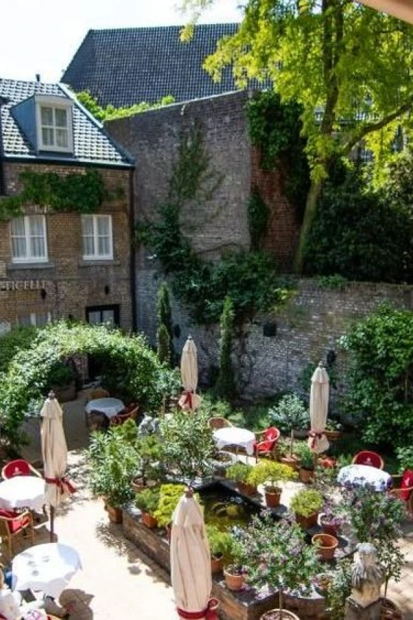 de twee hotelgebouwen ligt een romantische binnentuin — een rustige